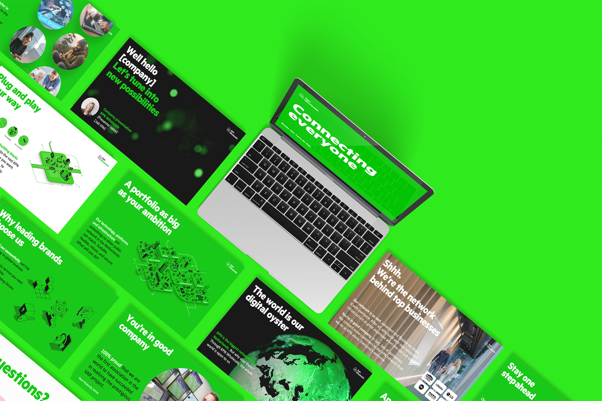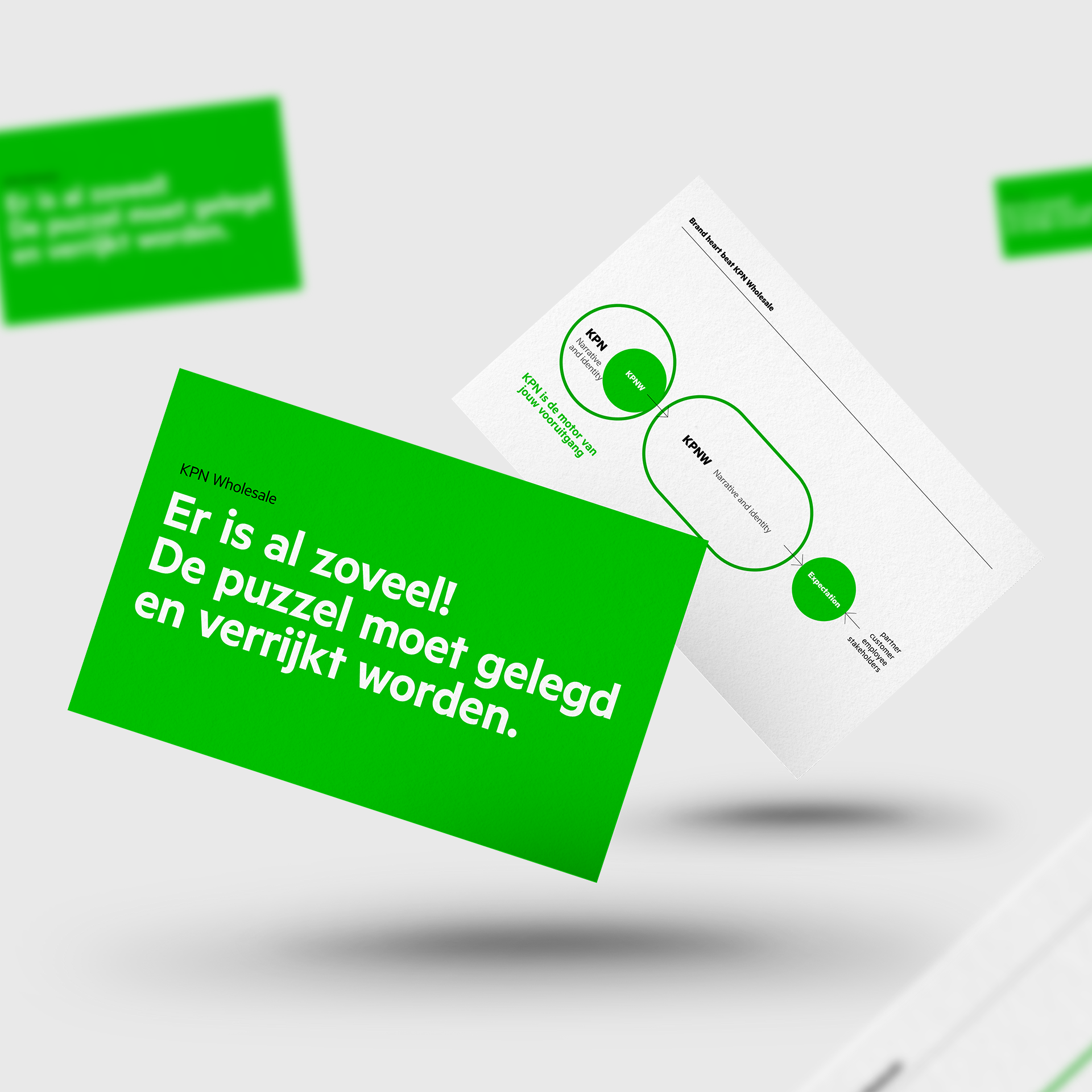 Het verhaal is zo krachtig dat het tot een slechts tien slides tellende pitchpresentatie is uitgewerkt. Praktisch uitgewerkt, zodat iedereen binnen KPN Wholesale het verhaal kan vertellen.