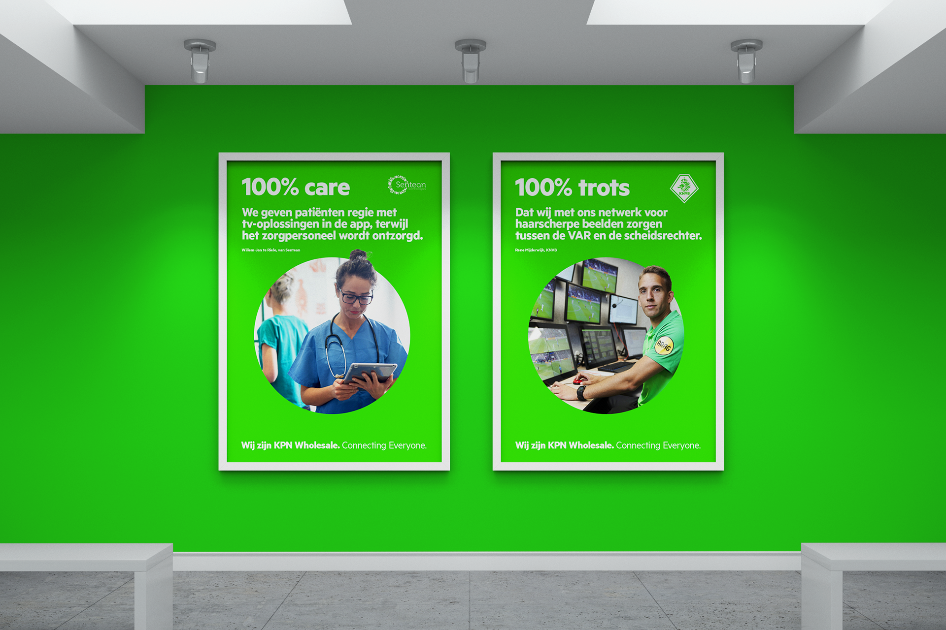 KPN Wholesale heeft een krachtig portfolio en dienstverlening. Maar de strategische stip en waardepropositie vertalen naar communicatie: een verhaal dat aanspreekt, overtuigd en beklijft. Maar allereerst de interne organisatie in beweging brengt. Het werd tijd om connectie te maken met wie KPN Wholesale vanbinnen werkelijk is. Door connectie te maken met partners, de klanten van partners en connectie het merk KPN. En zo een onderdeel zijn van het verhaal van KPN. Zonder af te wijken van de centrale merkwaarden en identiteit. Door de juiste stappen op de juiste momenten te zetten is de stip vertaald naar een glashelder narrative dat het fundament vormt voor interne branding en alle externe communicatie. Met een nieuwe website in de basis.